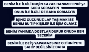Gecenin ardından Serhat Köse’nin yaptığı açıklamalar dikkat çekti. Köse, paylaştığı mesajda hem kendisi hem de Nuşin Kazak hakkında yapılan konuşmalara tepki göstererek, üçüncü kişiler üzerinden soru sorulmaması gerektiğini ifade etti.
